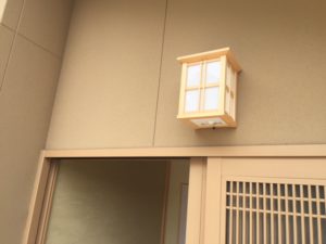 リノベーション現場は、建具が入り、クロスや床が貼られ、外には照明が付いていました。