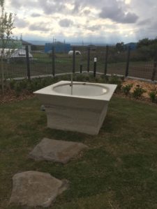 大食堂(NIGIWAIダイニング)は、とても広くて開放的です。大きなガラスから見える八ヶ岳の絶景が(視察の時は曇りで見えないのが残念でしたが)晴れた日には一望できます。暖かい日には、テラスにでてゆったりと会話を楽しみながら過ごすのも素敵だなと思います。そこから見えるお庭は、私たちと同じ岐阜県から一緒に来て下さった造園屋さんが手掛けました。