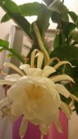 一夜限りの花なので、翌朝はお疲れ様って感じでたら~んとしていましたが、育て方がよければ年に3~4回咲くと書いてあったので、早速植え替えてみました。