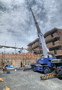 お隣のマンション3階のお子ちゃまが毎日進行具合を楽しみに見てくれているようで、手を振る姿にスタッフも癒されているようです。