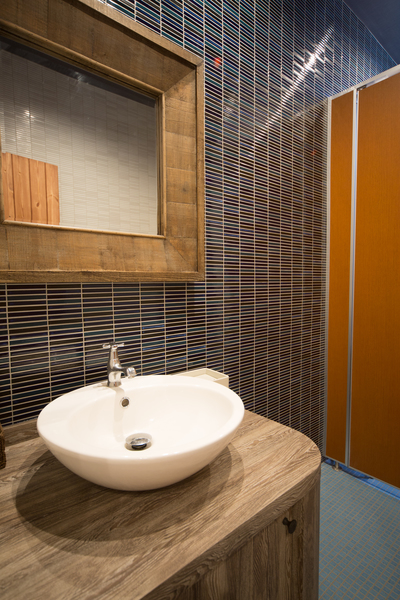 店内はタイルメーカーの強みを生かし、微妙なバランスを見ながら、あらゆるところにタイルを貼ることで、まるでタイルの見本張のような空間が完成しました。