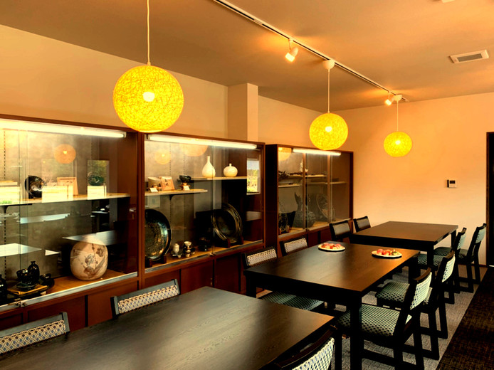 オーナー様のご家族に有名な陶芸家の方がおみえになり、エントランスや店内、料理の器など、さまざまなところで楽しむことができます。